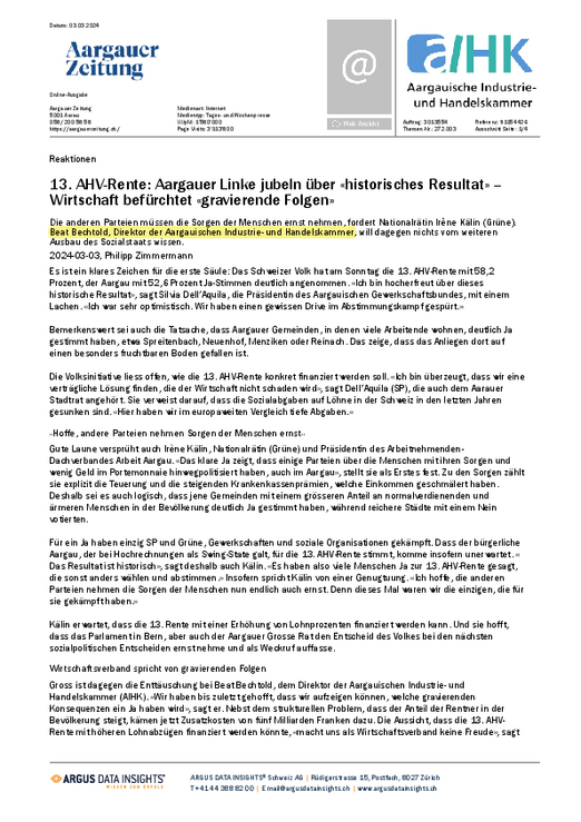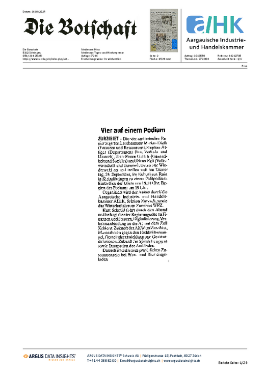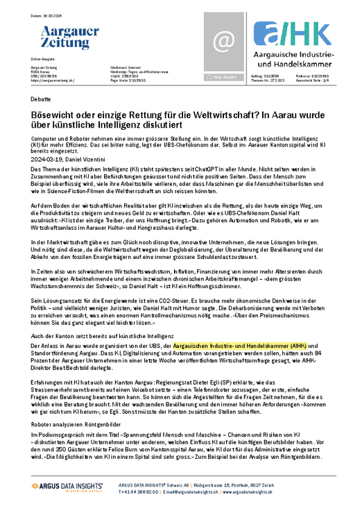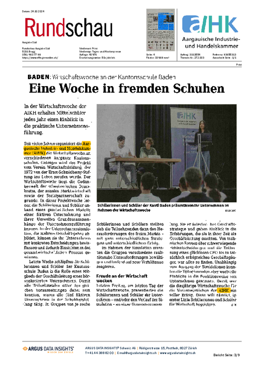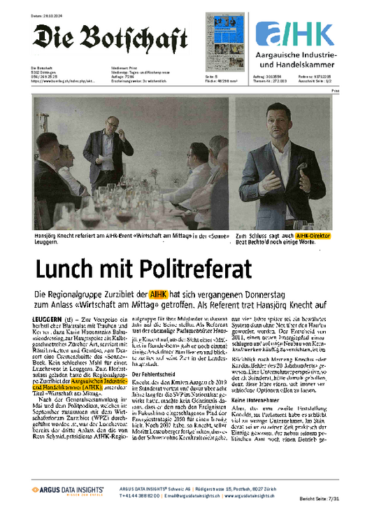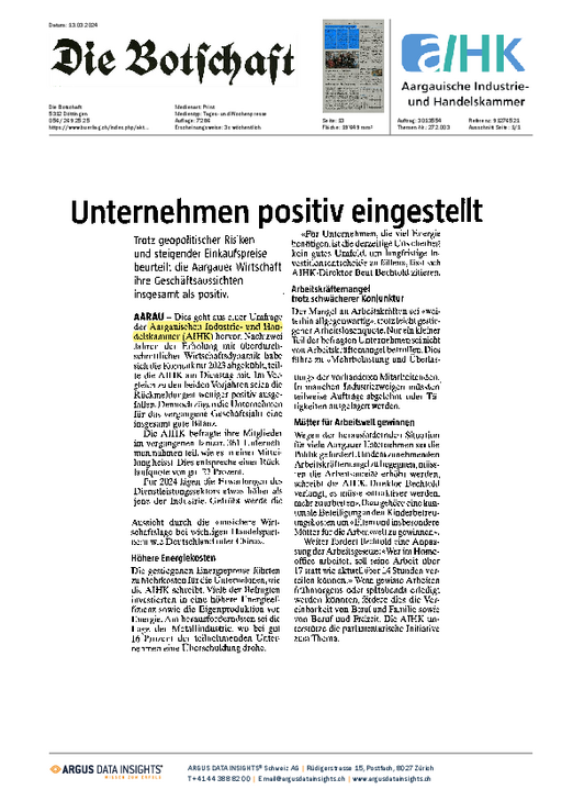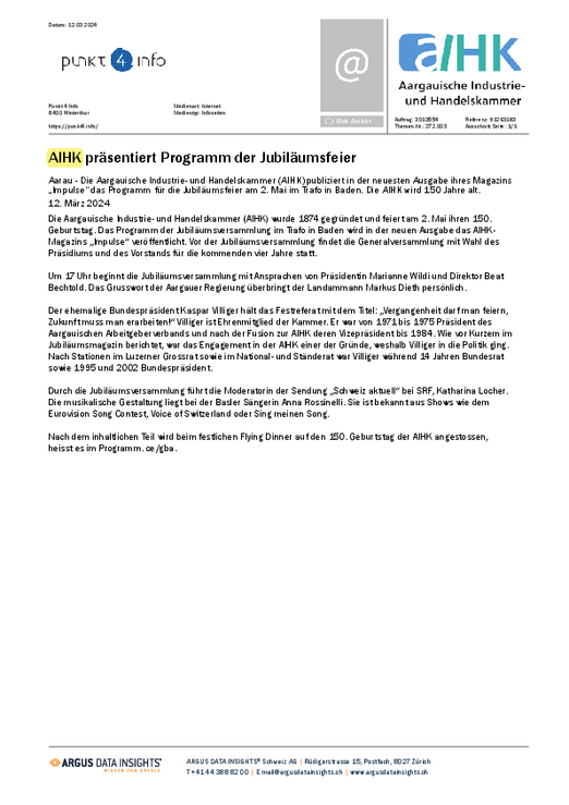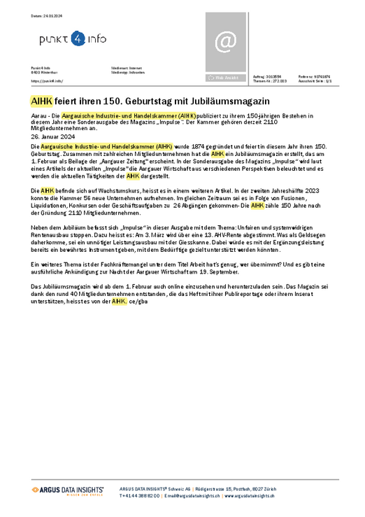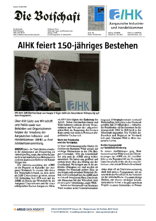 Die AIHK verfügt über ausgewiesene Kompetenz in Wirtschafts- und Politikfragen und veröffentlicht in den periodisch erscheinenden Informationsschriften «AIHK Update» (für Mitglieder) und «AIHK Impulse» (für Mitglieder, politische Entscheidungsträger und Interessierte) aktuelle Informationen zu relevanten Themen aus Wirtschaft, Recht, Export und Politik. Unsere Erscheinungen können Sie online lesen und teilweise auch in gedruckter Form bestellen.