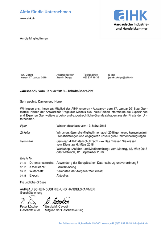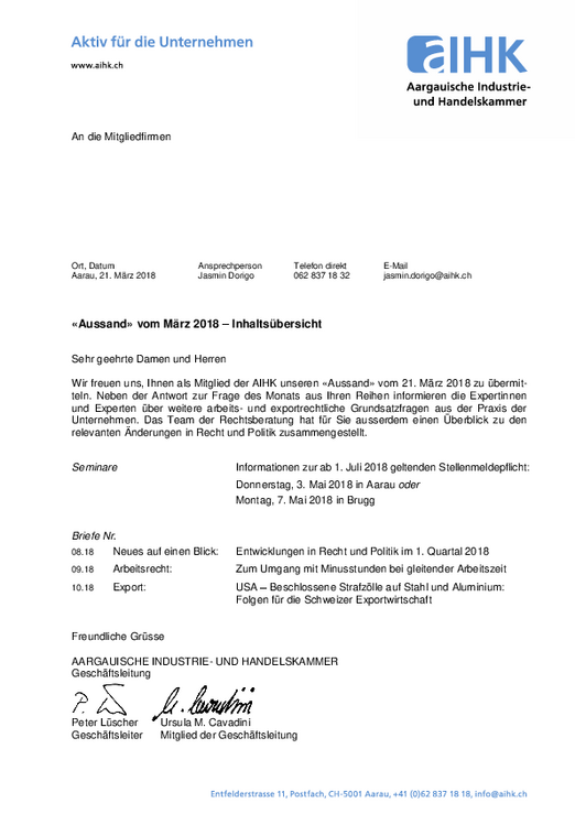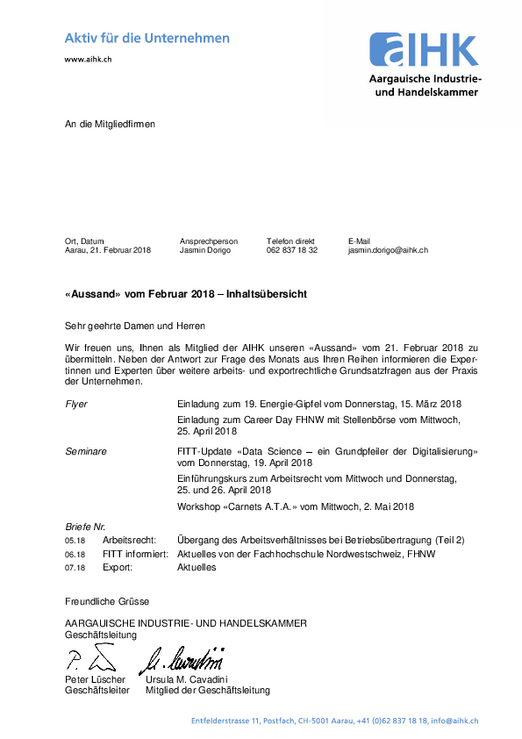Mit dem AIHK Update informieren wir monatlich über wichtige Themen aus den Bereichen Wirtschaft, Recht und Export. Das Update ist eine exklusive Dienstleistung für unsere Mitglieder.
